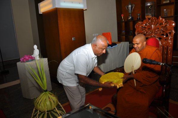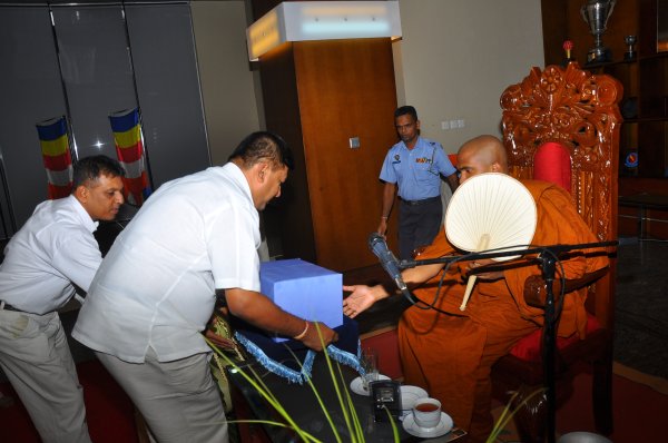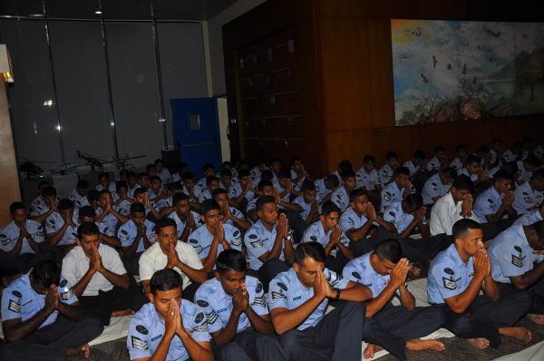 A Dharma Deshana programme presided over by Venerable Walpola Gothama thera, was held at SLAF Headquarters on 30th April 2014. The Commander of the Air Force Air Marshal Kolitha Gunatilleke, Mrs. Roshani Gunatilleke, members from the Air Force Board of Management, senior officers, other ranks and civilians participated in the programme.