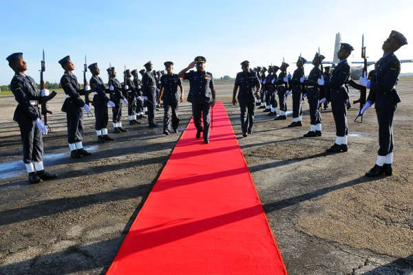 The Commander, upon arrival for the inspection to the SLAF Station Ampara, was received into the camp premises by the Group Captain Chaminda Wickramaratne through a street lining of airmen commanded by Flight Lieutenant RCN Ranneththi.