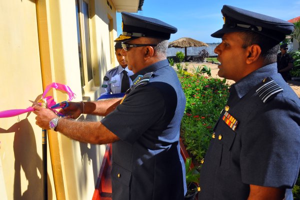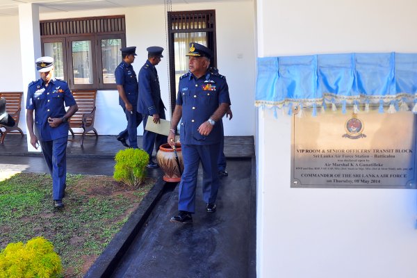 During the tour of inspection at Batticaloa the Commander declared open the newly constructed Officers' Married Quarters, VIP and Senior Officers' Transits Blocks and also awarded commendations to Warrant Officer RMJ Mahesh (Ops Grd Sp) and Corporal Kumara WNAD (Electrician) who had contributed immensely to uplift the standard of the Station. During the customary address to the Officers, Airmen and the Civilian staff of the Station the Commander praised all personnel on a commendable job done and encouraged them to set and reach even higher goals to uplift the standard of the Station and the Sri Lanka Air Force.