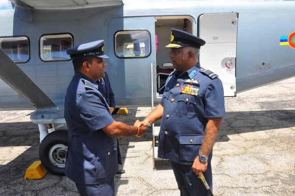 At SLAF Station Batticaloa, Commanding Officer Group Captain Nishantha Priyadarshana received the Commander on his arrival and a Street Lining commanded by Flight Lieutenant NV Anura was accorded to the Commander of the Air Force.
