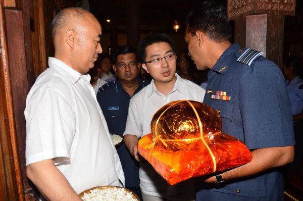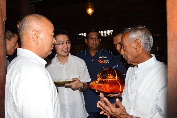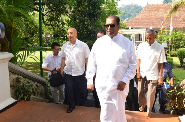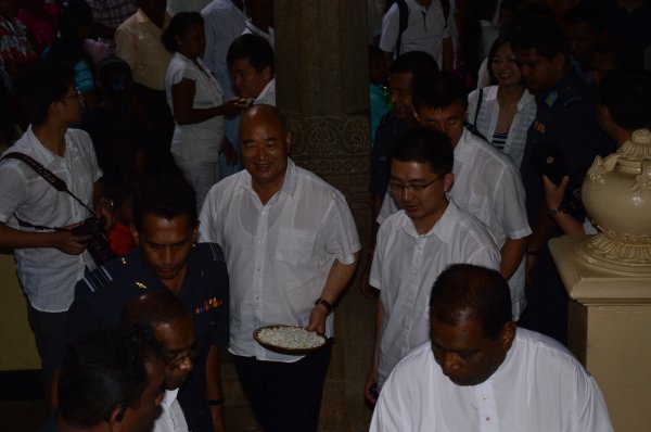 General Xu Qiliang, now in Sri Lanka, paid his obeisance to the sacred Sri Dalada Maligawa in Kandy yesterday morning (15th May 2014) together with other members of his delegation. The delegation arrived in Kandy from China Bay on two SLAF Mi 17 Helicopters. On arrival they were received by the Commanding Officer SLAF Station Sigiriya, Wing Commander CP Gunatileke and were conducted to the sacred temple for veneration.