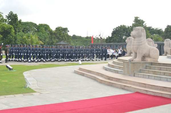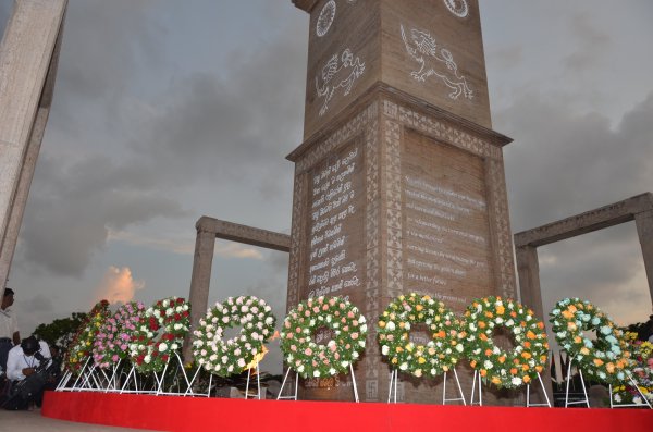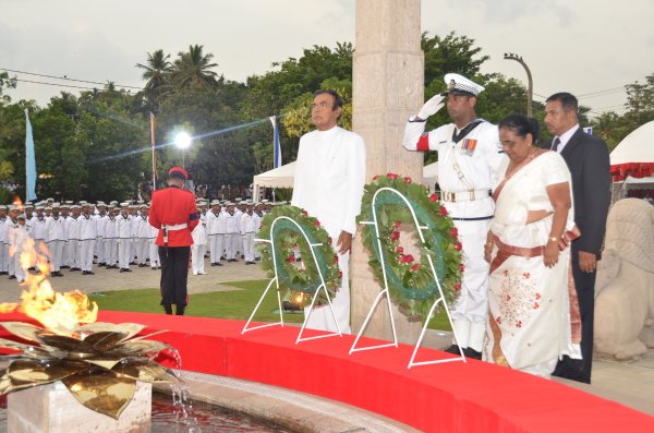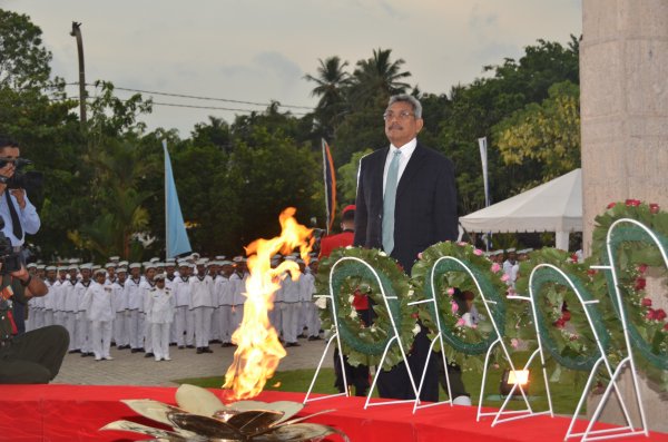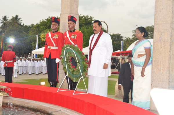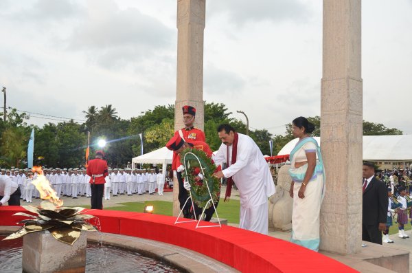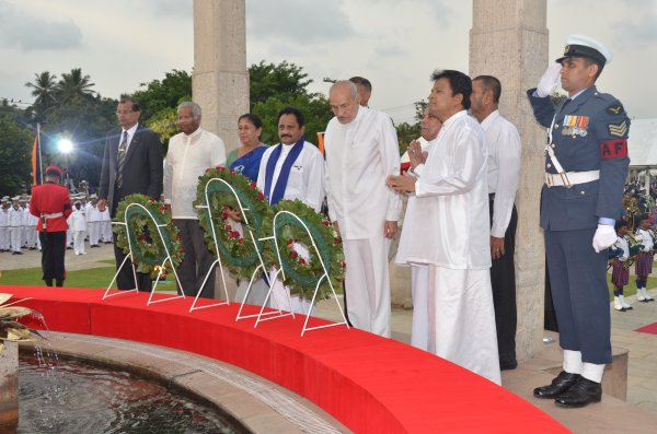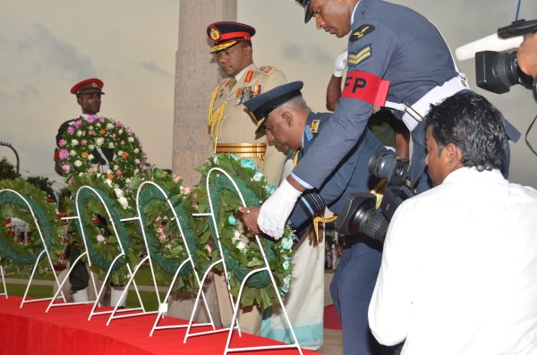 heroes by placing a floral wreath in front of the Ranaviru Memorial. It