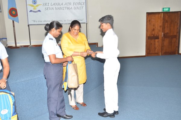 Nine students who obtained Nine “A” passes were selected and provided with a Gift Pack and a pass book of a newly opened account at Hatton National Bank (HNB) with a capital amounting Rs 10,000.00 deposited by the Seva Vnitha Unit (SVU) of the Sri Lanka Air Force.