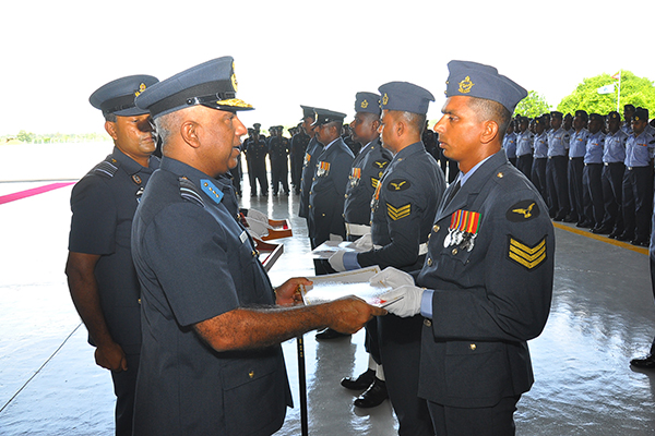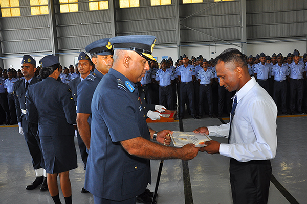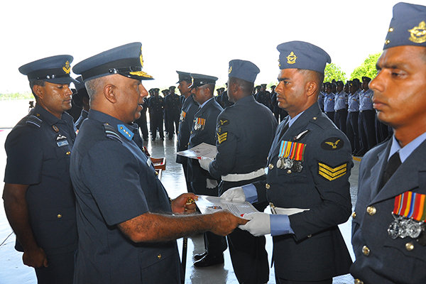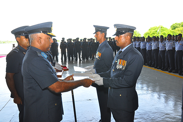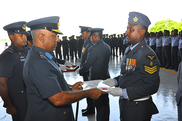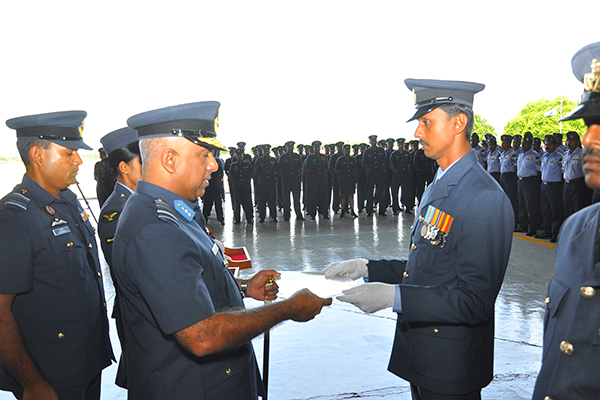 Certificates of Commendation were awarded by the Commander to 14166 Master warrant Officer RKDP De Silva ( Aero Eng Fitter SP),07218 Warrant Officer DLG Perera (Ops Grd III),19093 Flight Sergeant Wikramasinghe WMMP (Air Frame Fitter SP), 19615 Sergeant Sugath Chamara MG (Ops Grd SP I),22968 Sergeant Alahakoon AMKS (Aero E & I Fitter SP), Mr. HMG Ranathunga (Electrician Class I), and Mr.DTJS Dharmasena (Labour Class III) for the valuable service they rendered to the development of the Air Force.