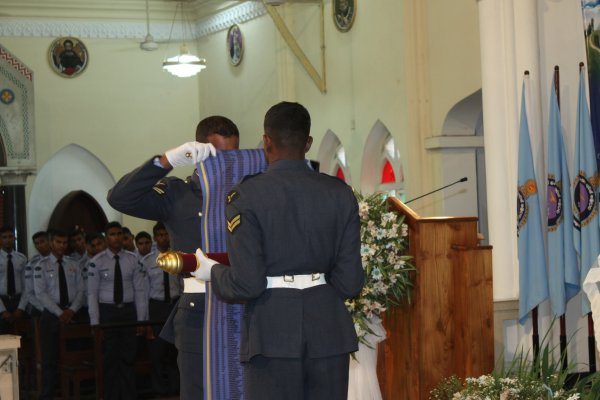 During the ceremony Flags representation all formations and units of the SLAF were marched up to the alter and blessings were invoked on the flags and the establishments that they represented a containing all the name of who sacrificed their lives in the time of duty was also offered and consecrated.