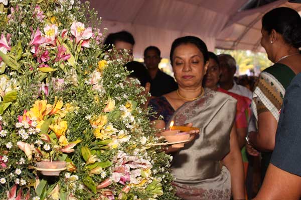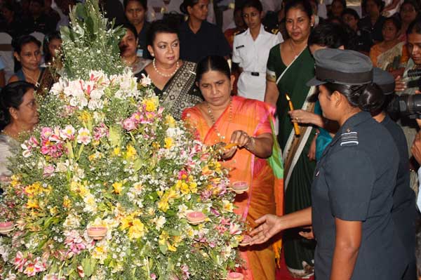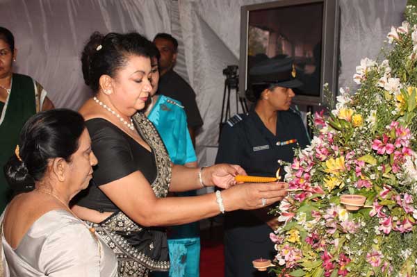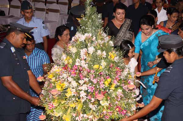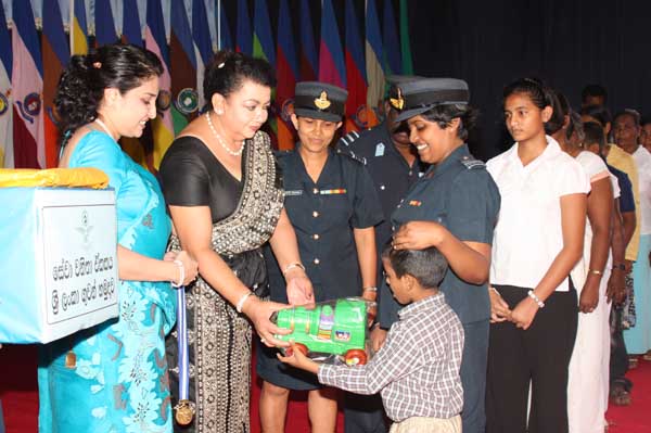 First lady Madam Shiranthi Rajapakshe graced the occasion as the chief guest. She was honored by a mother of a war hero for her invaluable service. Mrs. Nelum Goonethilake the chairperson, Sri Lanka Air Force Seva Vanitha Unit awarded her with a scroll of appreciation.