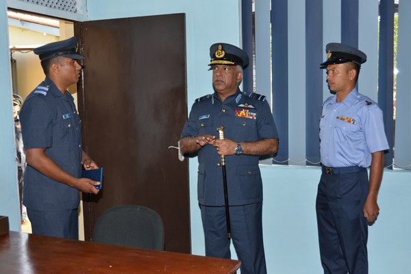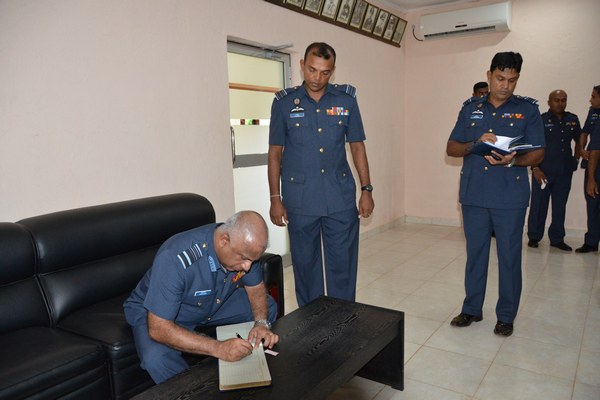 The Commanding Officer SLAF Station Morawewa, Wg Cdr MPS Marapperuma welcomed the Commander with a street lining. During the inspection, the Commander inspected the camp premises and also declared open the newly constructed “Illangam Maduwa” in the presence of Chairman Angampora, Air Cdre CB Labrooy.