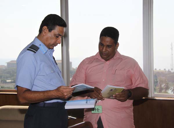 three books authored by him on the humanitarian operations carried out against the separatist terrorist organization to the acting Chief of Defence Staff and Commander of the Air Force, Air Chief Marshal Roshan Goonetileke.