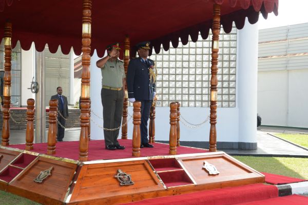 Chief of the Defence Force of the Republic of Maldives was afforded a Guard of Honour, which was conferred by the Colour Squadron of the SLAF. The Guard of Honour was commanded by Flight Lieutenant OWKP Owitipana.