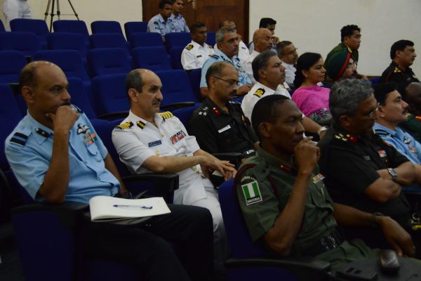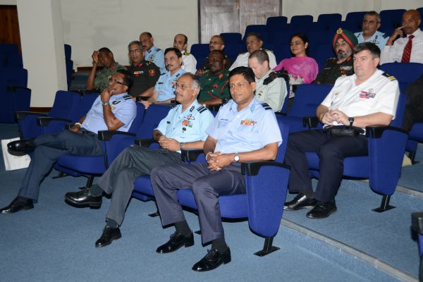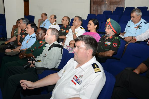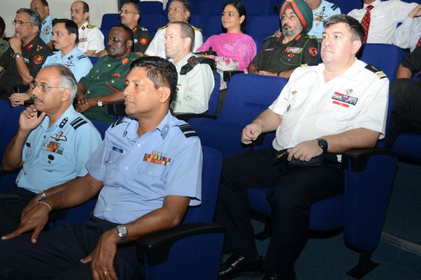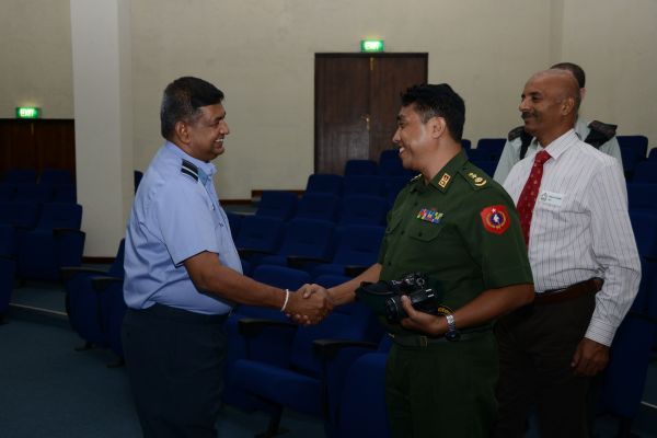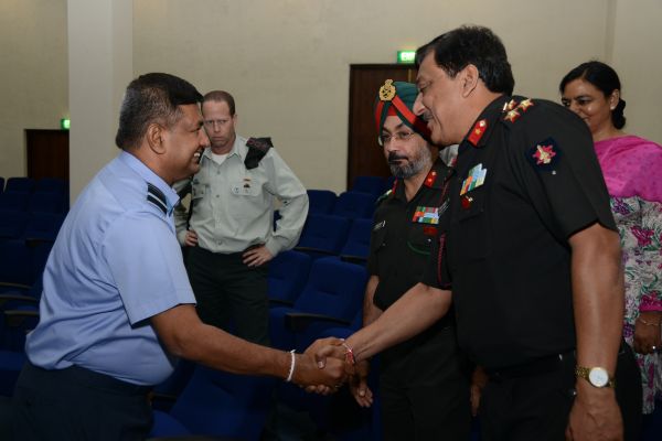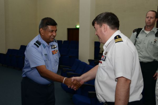 A 18-member delegation of 54th course of the Indian National Defence College (NDC) comprising senior Officers of Tri-Services from India, Myanmar, Tunzania, Oman, Nigeria, Israel and France, who are currently on their Strategic Neighborhood Study Tour to Sri Lanka, visited the Sri Lanka Air Force Headquarters on 26th August 2014. The delegation was headed by AVM Vipin Indira Padmanabhan, the Senior Directing Staff of Indian NDC. The delegation was accompanied by the Indian Defence Attache in Sri Lanka Capt Prakash Gopalan.