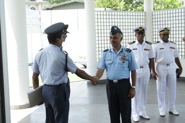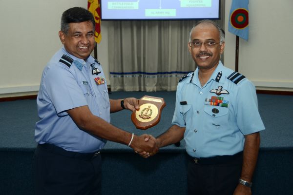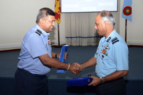 On conclusion, AVM Vipin Indira Padmanabhan presented a symbolic memento to the Chief of Staff. The Chief of Staff reciprocated by presenting a memento to AVM Vipin Indira Padmanabhan to mark the event. Director Ground Operations Air Vice Marshal K Yahampath, Director Aeronautical Engineering Air Vice Marshal PDJ Kumarasiri, Director Welfare Air Vice Marshal MLK Perera and Director Logistics Air Commodore DLS Dias were also present at the occasion.