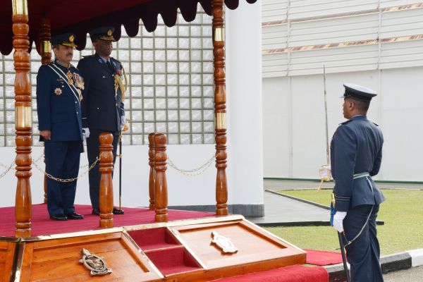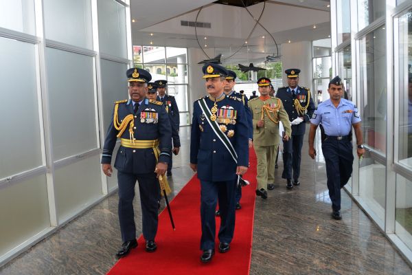 The Chief of the Air Staff was received upon arrival by the Commander of the Sri Lanka Air Force, Air Marshal Kolitha Gunatilleke and was afforded a Guard of Honour which was conferred by the Colour Squadron of the SLAF.