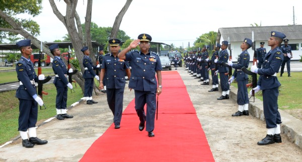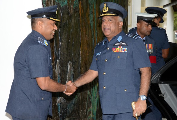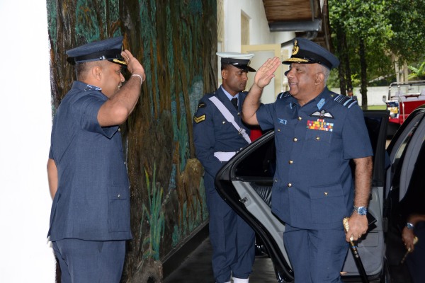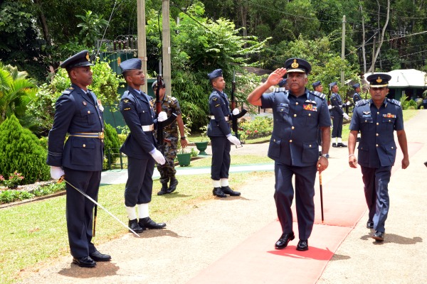 During the inspection at SLAF Mirigama, the Commanding Officer Group Captain SCK Pallewela received the Commander on his arrival and accorded a Street Lining.