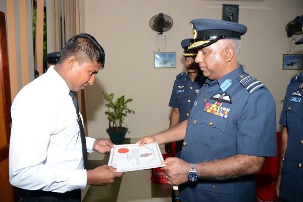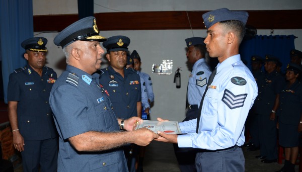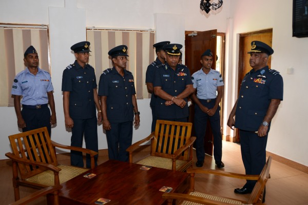 The Commander was welcomed by the Commanding Officer Group Captain TADR Senanayake at SLAF TTS Ekala and was accorded a Street Lining at the station premises. The Commander awarded Commendations to following personnel for their outstanding meritorious services towards the activities of the TTS.