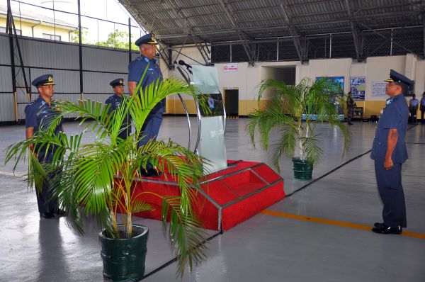 The newly constructed Sub Guard Room, Basketball court and the Model Aircraft Workshop at the Air Force Museum were declared open by the Commander. The customary address by the Commander to the personnel was made at the No. 8 Sqn Hangar on completion of the inspection.