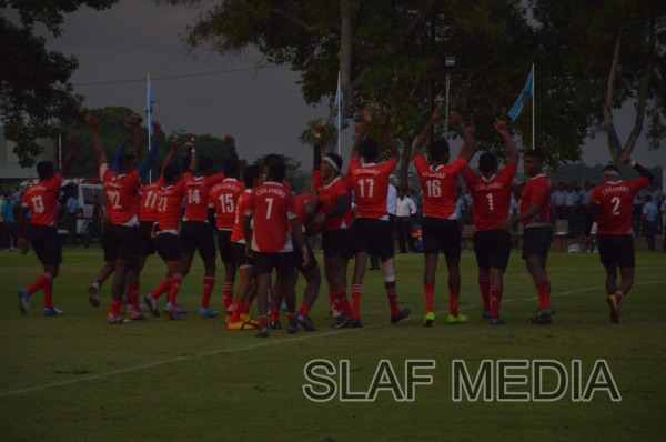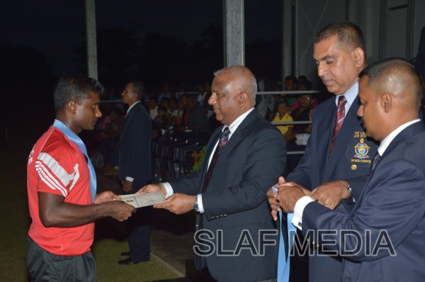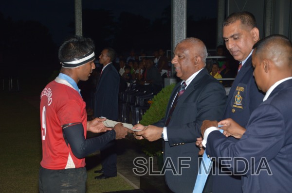 At the half time, SLAF Stn Cbo led 5 – 0 through a try by Fg Off Nonis. After lemons, Cbo team dominated the proceeding through some fast and open Rugby. They increased the lead through a Penalty by Cpl Peduruarachchi and a try by LAC Silva and the score line read 13 – 0 at the long whistle in favour of the team from Colombo.
