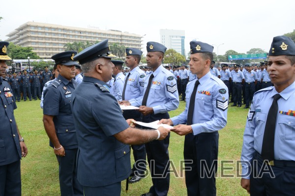 During the course of the inspection the Commander inspected the all areas of SLAF Station Colombo. The Commander awarded Commendation to two Master Warrant Officers, three Warrant Officers, nine SNCOs, nine JNCOs, and six Leading Aircraftmen for their meritorious contribution to their own Unit in particular and to the Air Force in general.