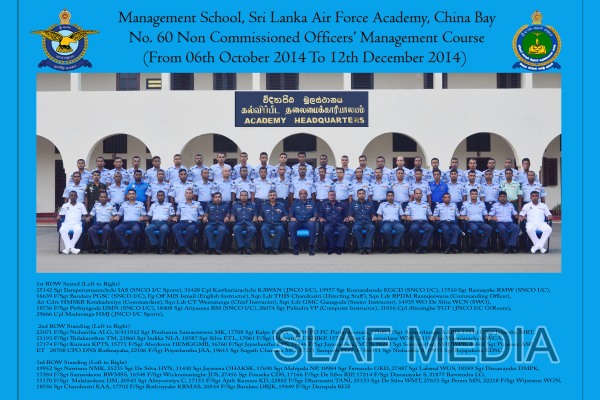 The primary objective of conducting this course is to impart a sound academic and managerial knowledgebase while sharpening leadership qualities within Non Commissioned Officers of the SLAF. The course runs through a well-formed syllabus over a scheduled period of 11 weeks. The comprehensive course is affiliated to the University of Rajarata and all Non Commissioned Officers who fulfil the required criteria will be awarded with a Certificate in Management. The 60th batch comprising 44 Senior Non Commissioned Officers of SLAF, 42 Junior Non Commissioned Officers of SLAF, 02 Senior Non Commissioned Officers of SL Army, 01 Chief Petty Officer and 01 Petty Officer of SL Navy received Certificates marking the successful completion of the course.