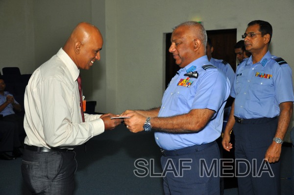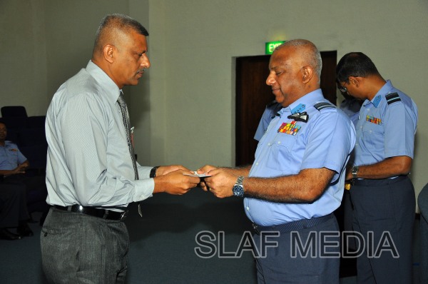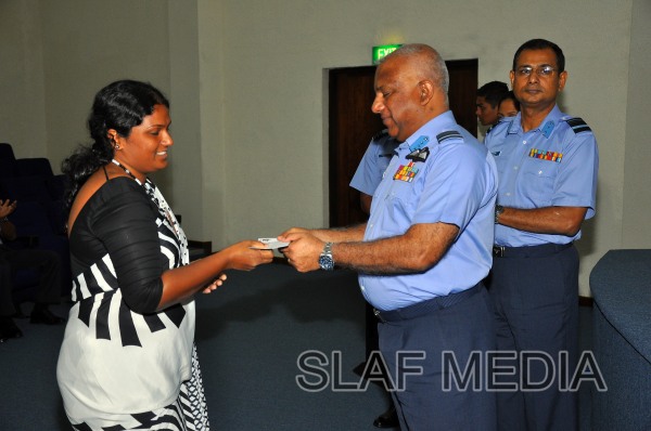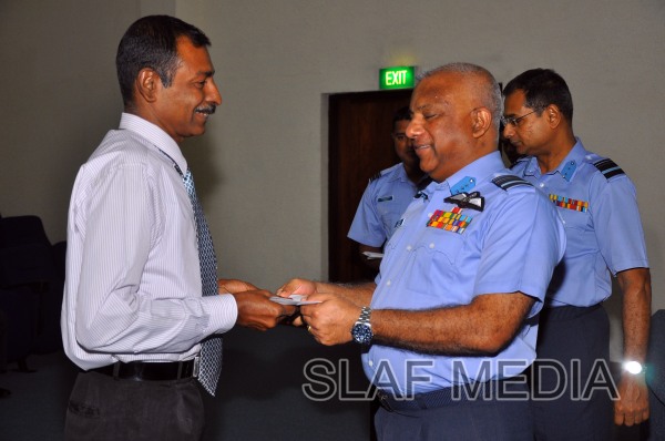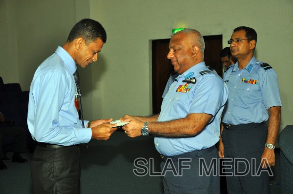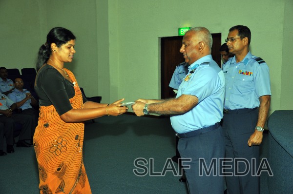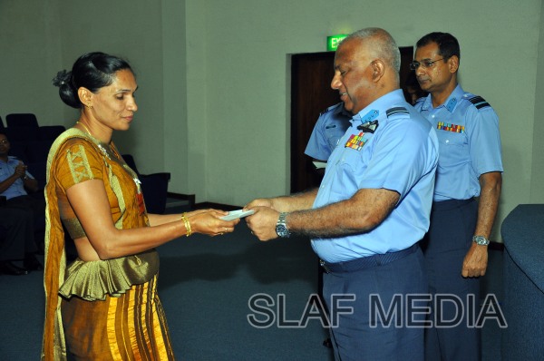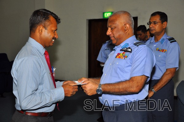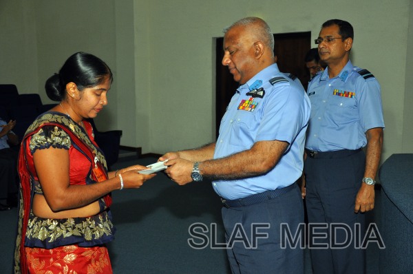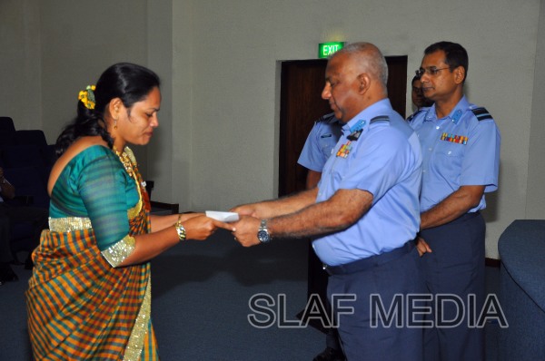 The cheques were handed over by the Commander of the Air Force Air Marshal Kolitha Gunatilleke to two Officers, 9 SNCO's and 3 JNCO's.