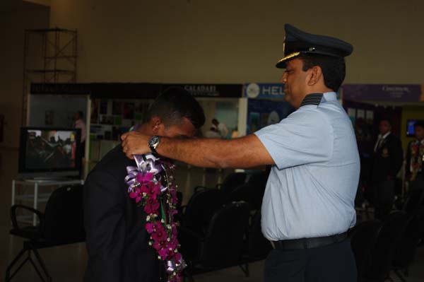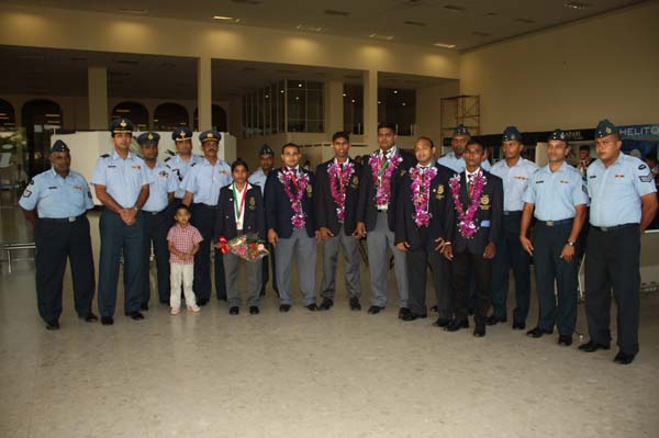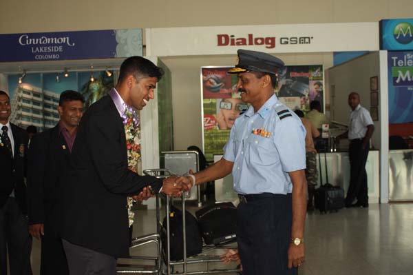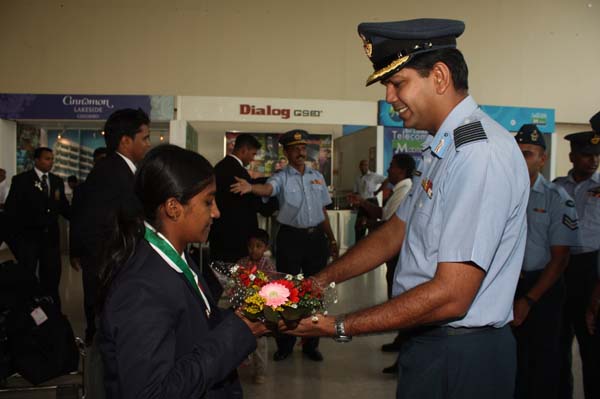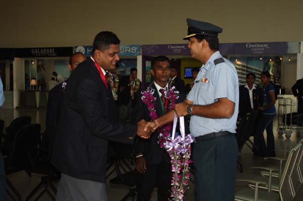 The SLAF Weight Lifters and Judokas who performed excellently, representing Sri Lanka at the ongoing 11th SAF Games returned to the island last afternoon (04 February 2010). On their arrival at the Bandaranayaka International Airport they were warmly received Members of executive sports council Group Captain Harsha Fernando , Group captain Roshan Biyanwila , Group Captain Prasanna Ranasinghe,Squdron Leader Deshappriya and also the president of Sri Lanka judo Federation Air Commodore Anura Silva.