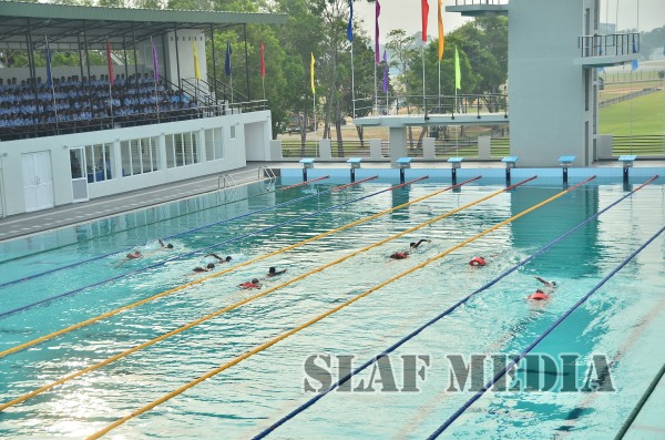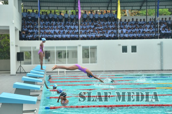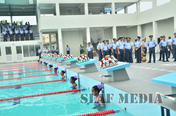 The newly constructed Swimming Pool, the biggest in the SLAF, was declared open by the Commander of the Air Force Air Marshal Kolitha Gunatilleke this morning (20 January 2015) at SLAF Ratmalana. This is the first phase of the Swimming Pool Complex being constructed by the Directorate of Civil Engineering.