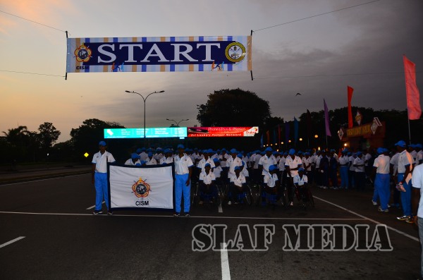 The International Military Sport Council (CISM) Day Run was flagged off at the Rifle Green Grounds,Colombo on 22 February 2015. Commander of the Navy Vice Admiral Jayantha Perera, Commander of the Air Force and present President of the Defence Services Sports Board Air Marshal Kolitha Gunatilleke, Major General EMM Ambanpola, Deputy Chief of Staff and representative of the Commander of the Army Lieutenant General Chrishantha de Silva took the lead in the run. Over hundred personnel from each service participated in ‘CISM Day Run’ which covered the distance of about 2 km.