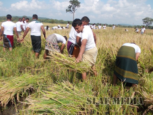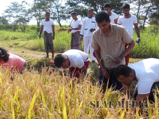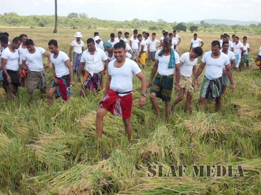 The harvesting of the Maha paddy crop in SLAF Station Mow commenced on