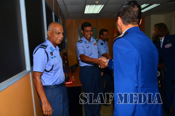 They met with the Director Training Air Vice Marshal Vijitha Gunaratne and some senior officers and discussed matters related to training in both countries. There was an exchange of mementos with the Director Training of the SLAF presenting the visitors with a memento from the Commander of the Air Force. The visiting delegation too, presented a token to the Director Training.