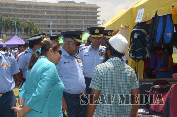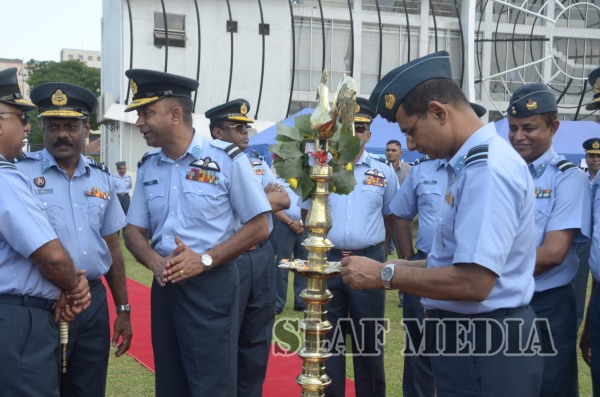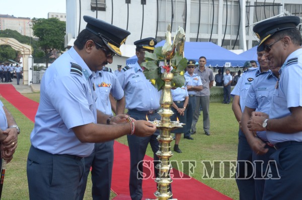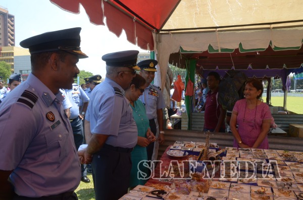The Commander of the Sri Lanka Air Force, Air Marshal Kolitha Gunatilleke attended the Avurudu pola with the Chairperson of SLAF Seva Vanitha Unit Mrs. Roshani Gunatilleke as the Chief Guest. The event was launched after the lighting of the traditional oil lamp. Director Welfare Air Vice Marshal MLK Perera, members of the AFBM and Commanding Officer of SLAF Station Colombo Air Commodore Prasanna Payoe were present during the opening.