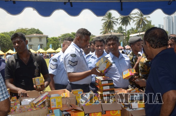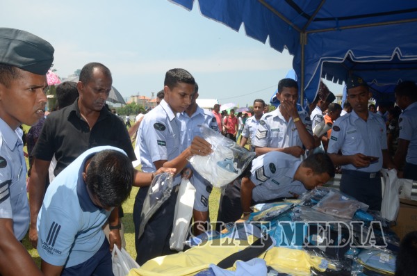 Officers, Airmen, Airwomen and civilian staff of Sri Lanka Air Force attended the Avurudu Pola along with their family members and were seen happily buying various products offered at concessionary rates at the outlets operated by SLAF establishments from all over the country.