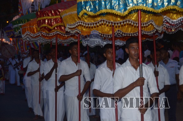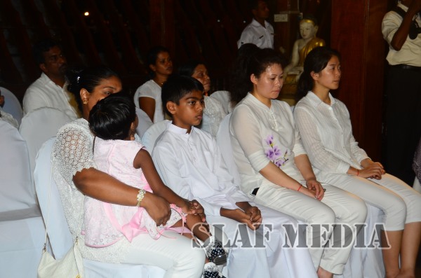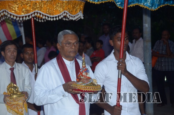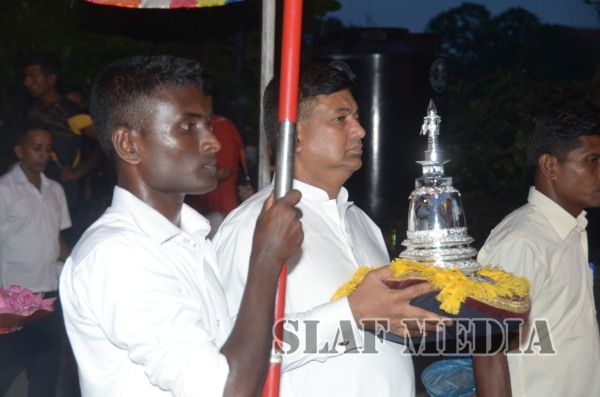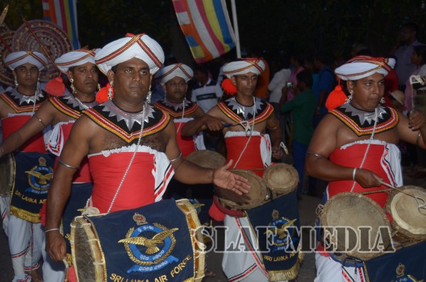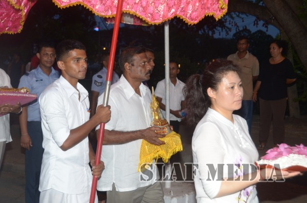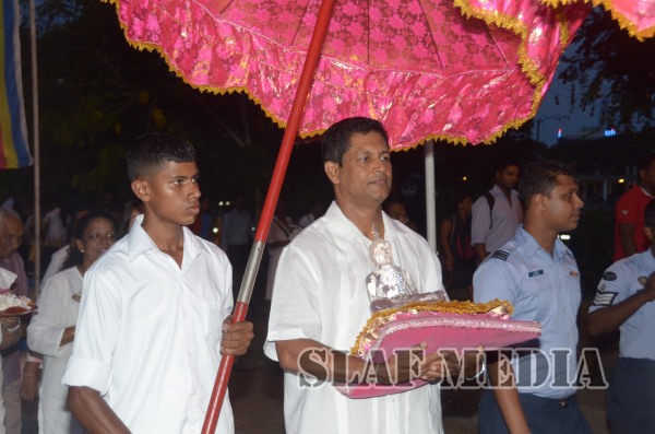 The guests, Honorable Speaker Chamal Rajapakshe and the Chief of Staff of the Air Force were accompanied to the “Seema Malakaya” from the Gangarama temple in a ‘Perahara’. The Chief of Staff of the Air Force and the Honorable Speaker took the main and other reliquaries respectively as they made their way to the Seema Malakaya.