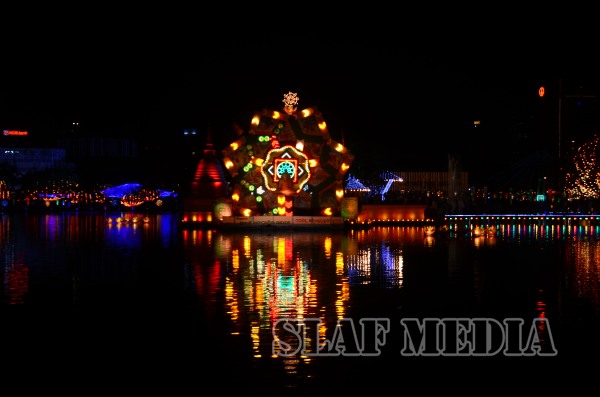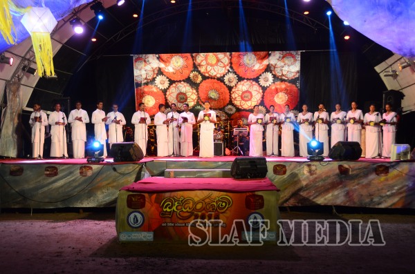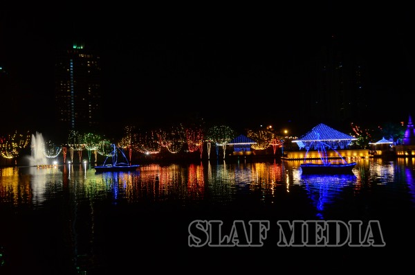 The lighting of the oil lamp by the distinguished guests followed the chanting of ‘Seth Pirith’ by members of the ‘Maha Sangha’. Following this and prior to witnessing the Bakthi Geetha program, the Honorable Speaker and Air Vice Marshal Gagan Bulathsinghla switched on the lights of the Vesak Kalapaya.