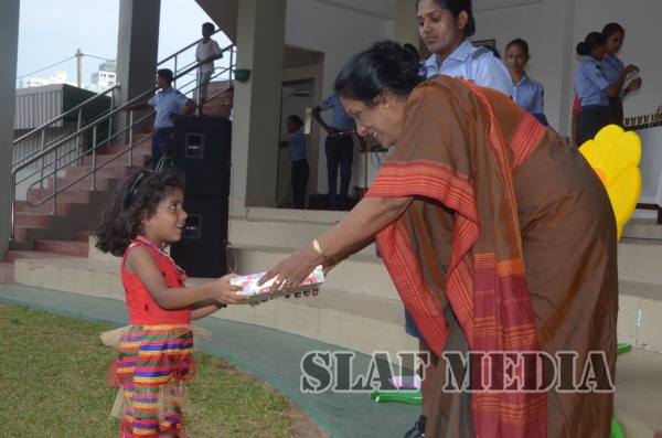 The Chairperson of the SLAF Seva Vanitha Unit, Mrs. Samanthi Bulathsinghale graced the occasion as the Chief Guest and distributed the prizes and gifts among the children. Commanding Officer of SLAF Station Colombo Air Commodore Prasanna Payoe also present at the event.
