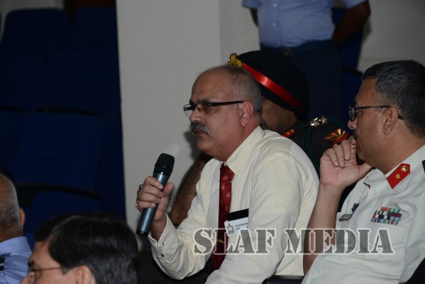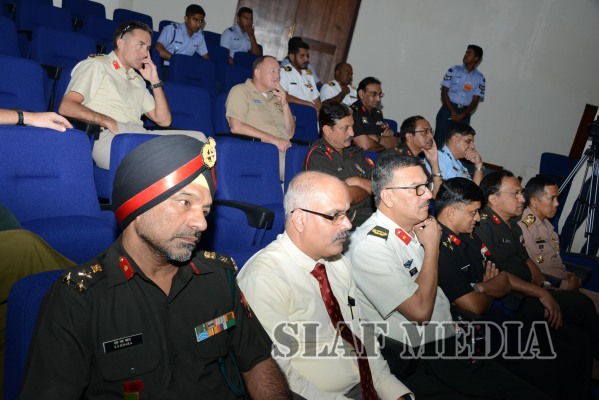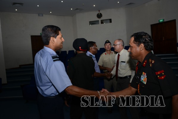 On arrival to AFHQ, they were welcomed by Air Vice Marshal Vijitha Gunarathne, the Director Training of the Air Force. Subsequently, a presentation was conducted by Group Captain Lasitha Sumanaweera, the Senior Staff Officer Air Operations on ‘Post Conflict Role and Challenges’ of the Sri Lanka Air Force. Thereafter, the delegation had the opportunity to meet the Commander of the Air Force, Air Marshal Gagan Bulathsinghala who made himself available for a discussion for the benefit of the senior ranking NDC students.