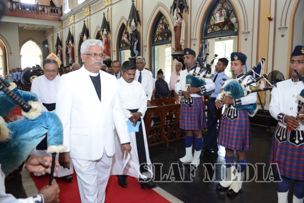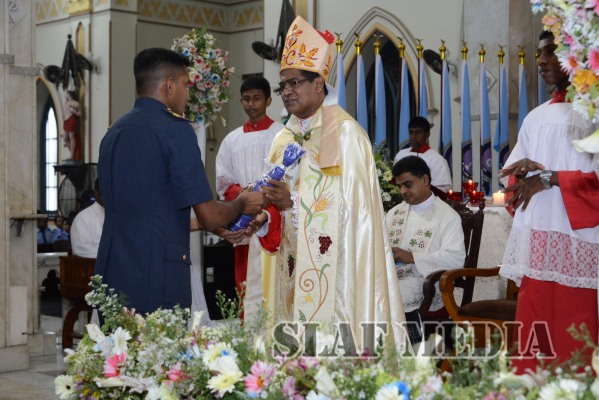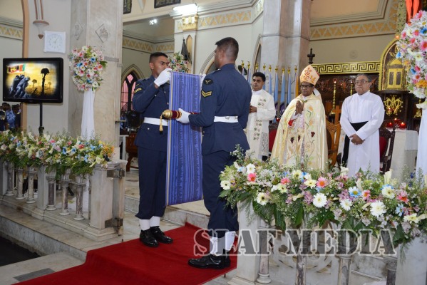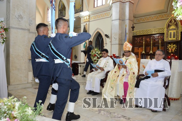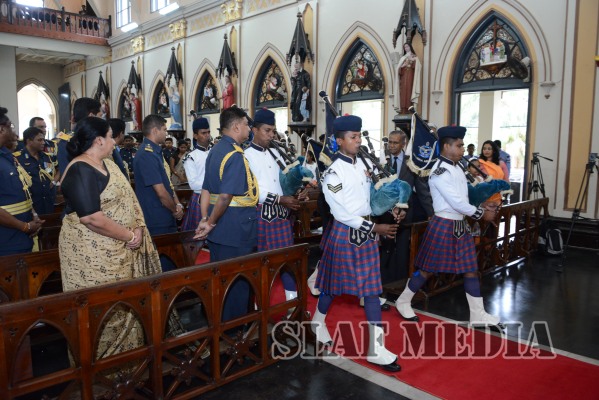 During the ceremony, flags representing all Bases and stations of the SLAF were marched up to the alter and blessings were invoked on the flags and the establishments that they represented. A scroll containing the names of all who sacrificed their lives in the line of duty was also offered and consecrated.