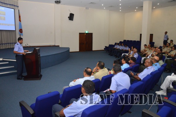 On their arrival to AFHQ, they were received by Air Vice Marshal Vijitha Gunaratne, the Director Training of the Air Force. Subsequently, a presentation was conducted by Group Captain Lasitha Sumanaweera, the Senior Staff Officer Air Operations on ‘Post conflict role and challenges’ of the Sri Lanka Air Force.