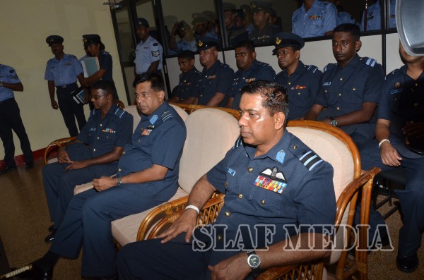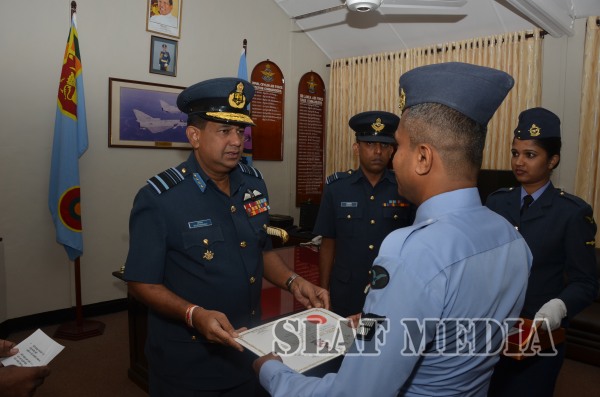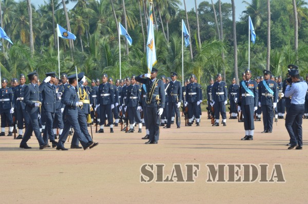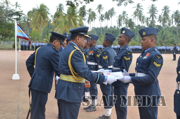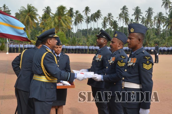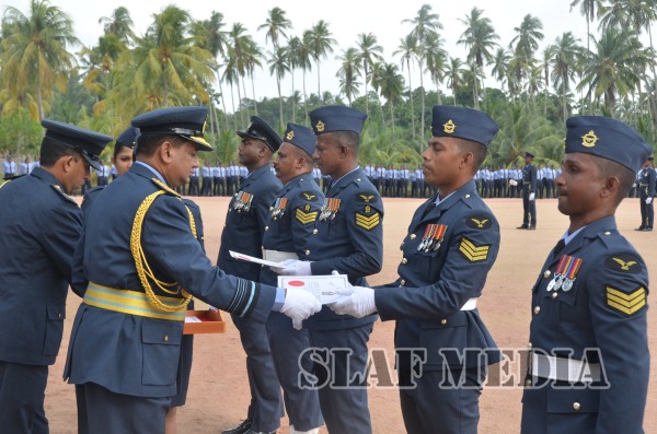 The Commander reviewed the AOC’s parade, commanded by the Base Commander, Air Commodore SK Pathirana. Certificates of commendation were awarded during the parade to 1 Warrant Officer, 6 SNCOs, 5 Corporals, 2 Airmen and 1 Civilians for their meritorious contributions to the Base in particular and to the Air Force in general.