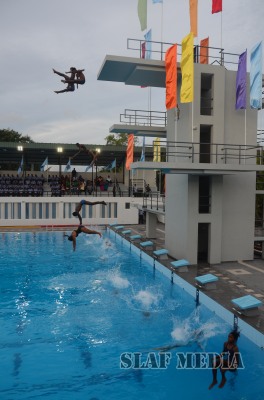 Built at a total cost in excess of Rupees Million 162, the pool is expected to help improve the standard of swimming and aquatics in the Sri Lanka Air Force. As at now the SLAF has produced a number of outstanding sportsmen and women in the field of aquatics including the 2011 National record holder of the 50 metre free style event. Further, the women’s water polo team of the SLAF has taken home the National championship on five occasions in including the year 2011.