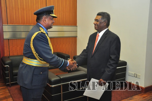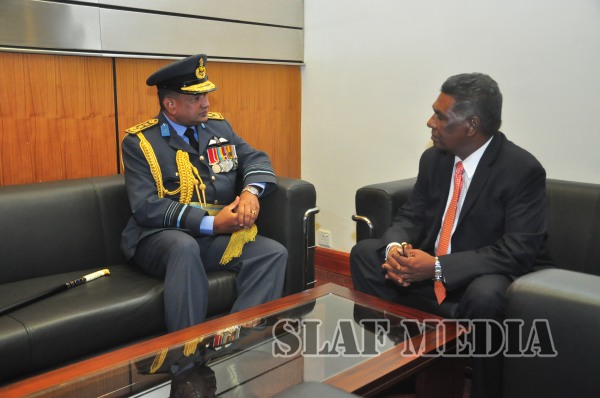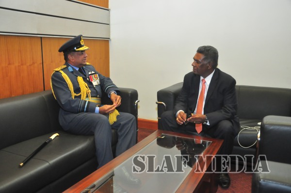 Commander of the Air Force Air Mashal Gagan Bulathsinghala paid a courtesy call on the newly appointed Secretary to the Ministry of Defence, Mr. Karunasena Hettiarachchi at the Ministry premises yesterday (09 September 15).