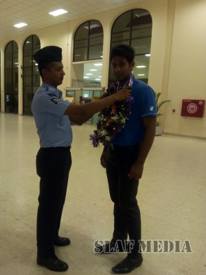 Sri Lanka Air Force athlete Leading Air Craftman Ishara Sandaruwan, who set a Sri Lankan record winning 4th place in the pole-vault at the Thailand open Track and Field Championship 2015, returned home last evening. Leading Air Craft Man Suminda Ranasinghe won a Gold medal for javelin event at the same Championship.