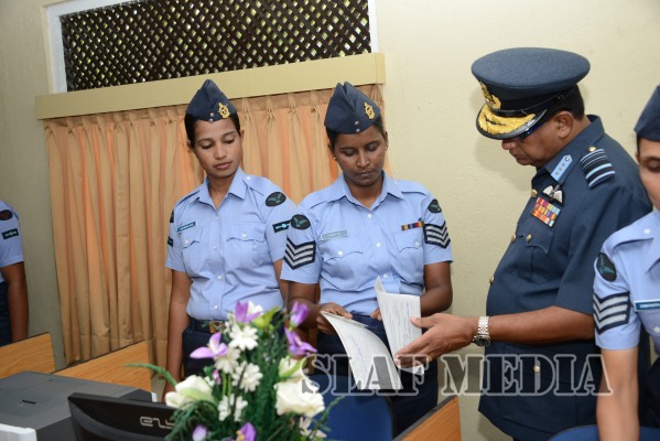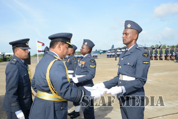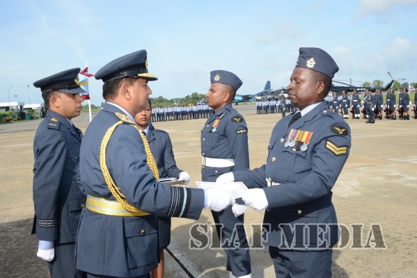 The Commander reviewed the AOC’s parade, commanded by the Base Commander, Air Commodore PDKT Jayasinghe. Certificates of commendation were awarded during the parade for meritorious contributions to the Base in particular and to the Air Force in general to the following personnel: