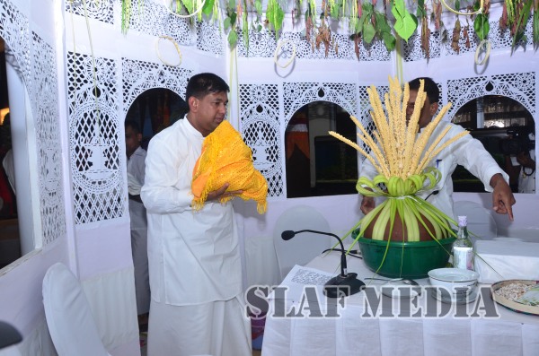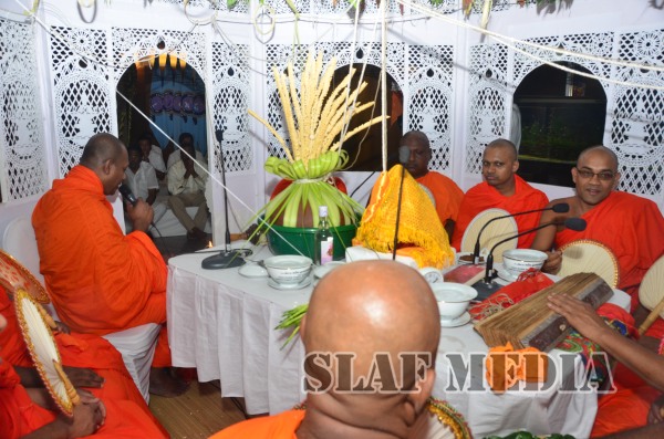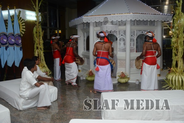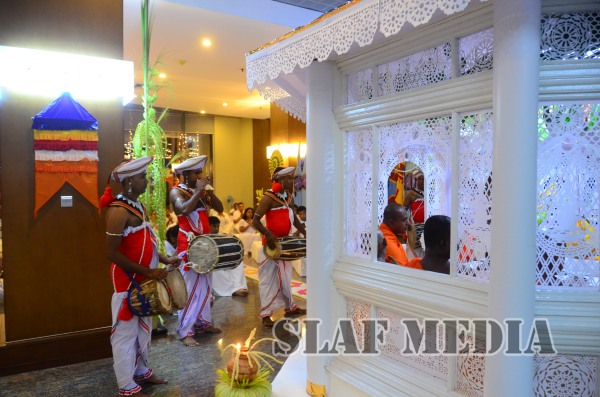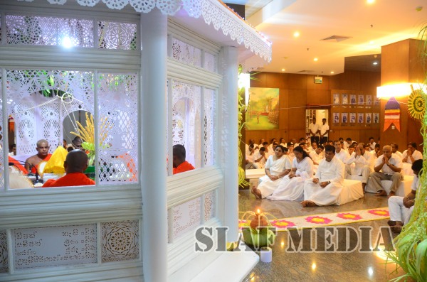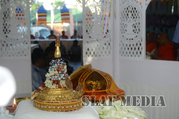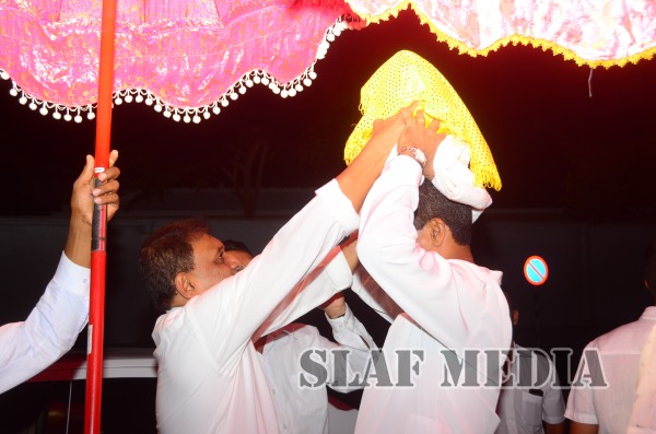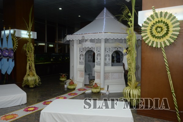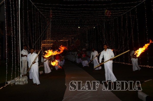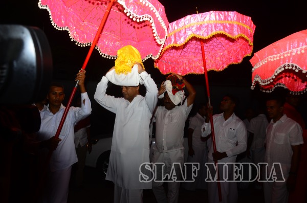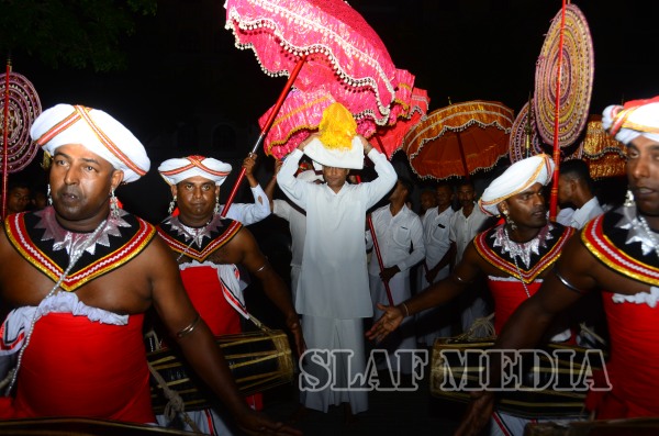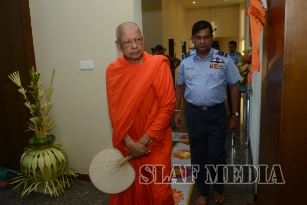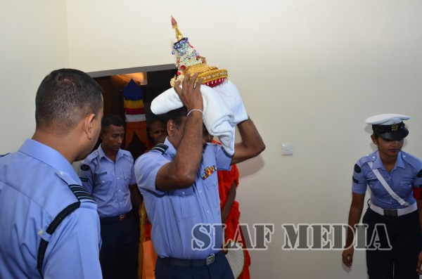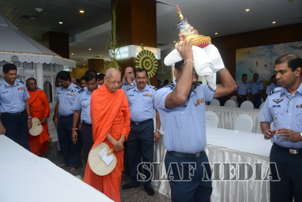Prior to the commencement of Pirith chanting ceremony, the ‘Reliquary’ (Karaduwa) was taken to the SLAF Headquarters in a colorful procession and was placed in the ‘Pirith Mandapaya’ by the Commander of the Air Force, Air Marshal Gagan Bulathsinhala.
