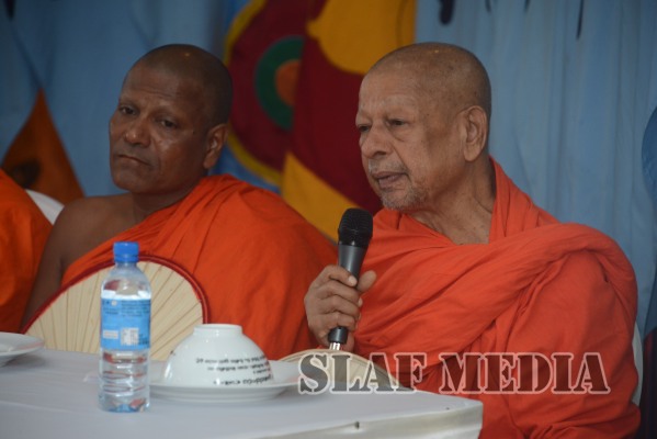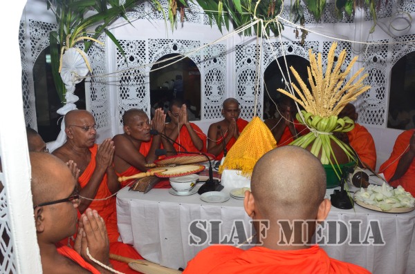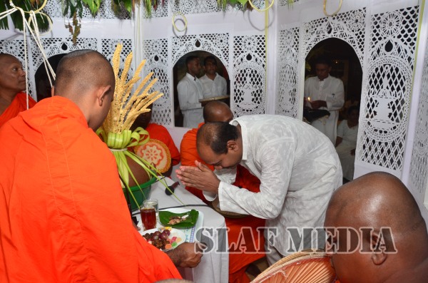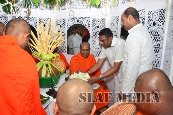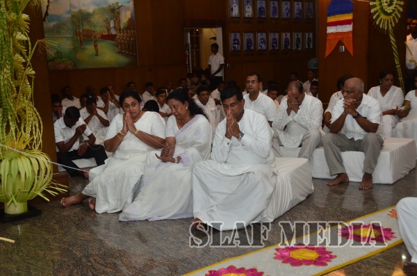 Subsequent to the all night Pirith chanting, an alms giving was accorded to the venerable Maha Sangha on Tuesday morning, which was followed by the Commander presenting the venerable clergy with ‘Ata Pirikara’. This meritorious endeavor culminated with all those who attended partaking in the alms giving.
