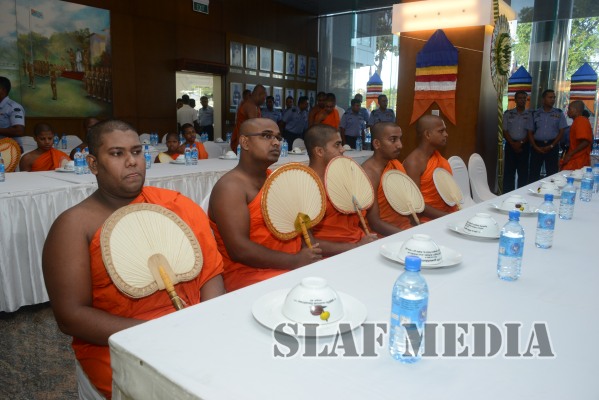 An all night ‘Pirith Chanting’ ceremony to commemorate Sri Lanka Air Force personnel killed and missing in action during active service and to invoke blessings on their souls, was held on Monday(21 September 2015) night followed by an alms giving for 63 members of the Maha Sangha on today morning (22 September 2015) at SLAF Headquarters.