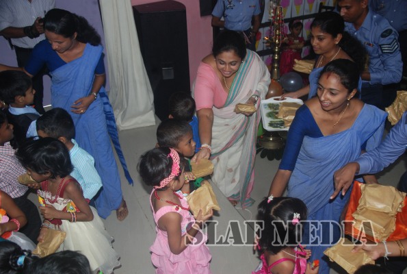 Mrs Bulathsinghala also graced an event organized by the Pre School of SLAF Base Vavuniya to celebrate the World Children’s Day for the year 2015. After lighting the traditional oil lamp by the chief guest, the Children of the Pre–school welcomed the visitors. The celebrations included a number of songs and a drama which was played by the children to add colour to the occasion. Valuable gift were also distributed by the chief guest among the children. The present Base Commander Gp Capt RAUP Rajapaksa, all Officers and the parents of the children witnessed the event.