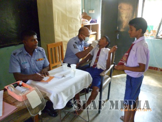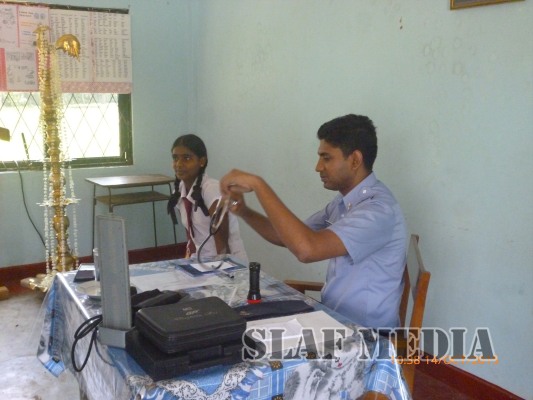 Students and civilians were screened and treated by medical and dental professionals and their supporting crew staff members from the Sri Lanka Air force in the areas of screening of vision and hearing problems, anthropometric measurement evaluation ( BMI –Body Mass Index) , screening of dental and dental hygiene and other vital organ system evaluations .