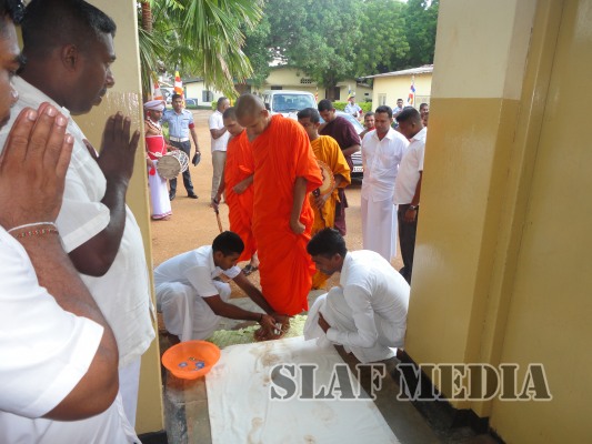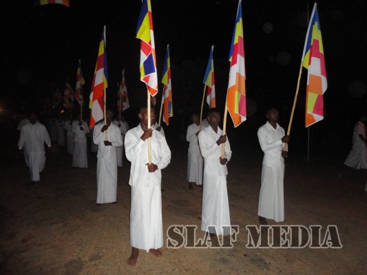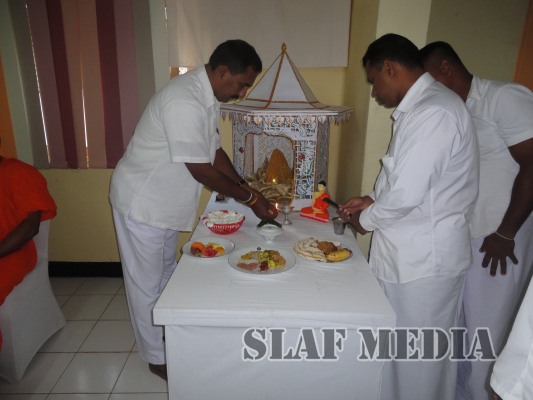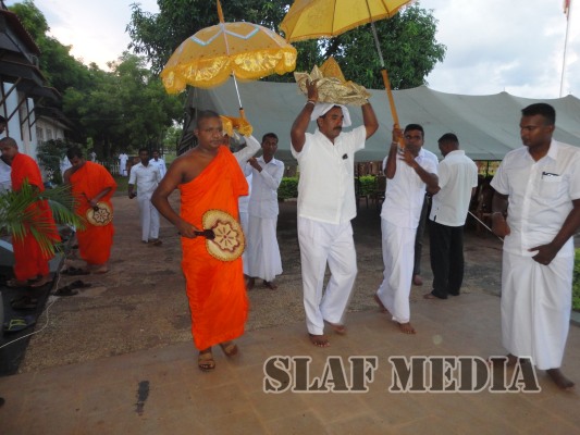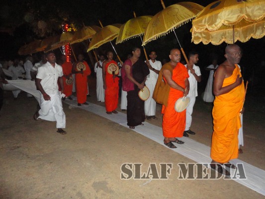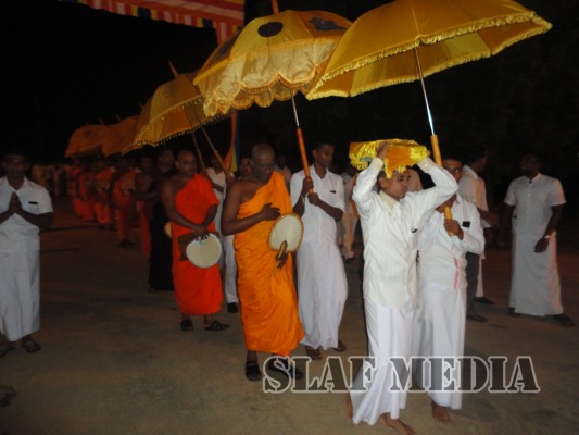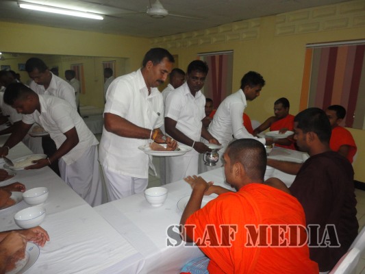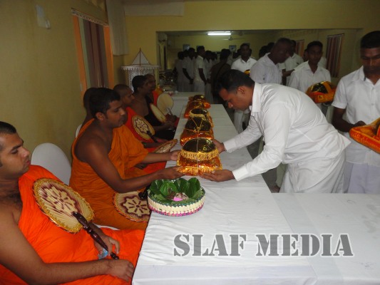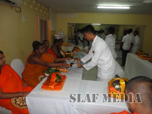 A colorful procession was organized by the Station personnel to accompany the religious relics and the Buddhist monks to the Pirith ceremony. Thereafter alms were offered to fourteen Buddhist monks on the following day and Atapirikara were presented to all Bhikkus who attended the ceremony under the patronage of all personnel of the station.