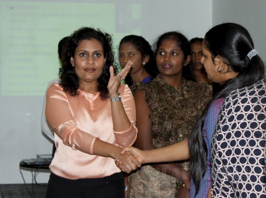 Mrs. Nayana Karunarathne was able to enrich the participants with her own experiences and delivered valuable tips on being a dutiful woman, wife, mother and servicewoman. Responsibilities as a Guest or a Host, simple and effective tips on planning functions, dining etiquette, significance of maintaining good health and personal hygiene were among the highlights of the day which also included practical demonstrations of sari draping, hair styles and make up of chosen participants.