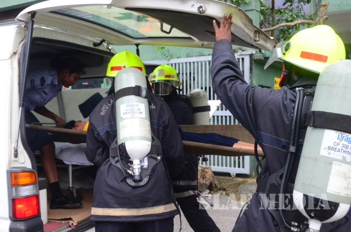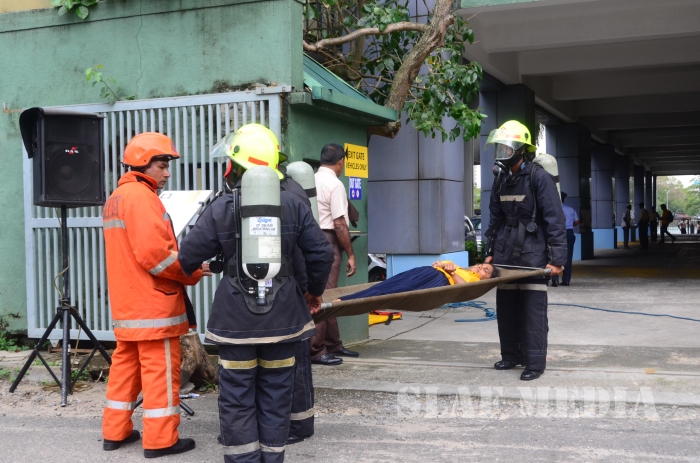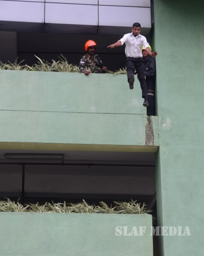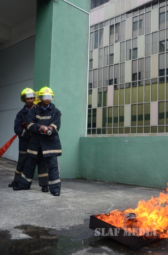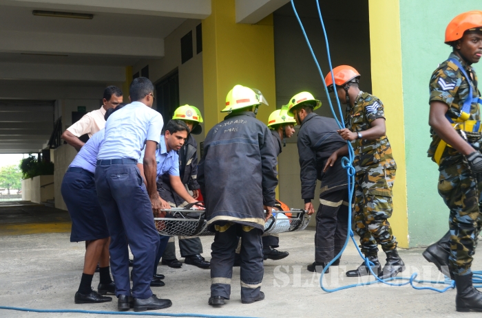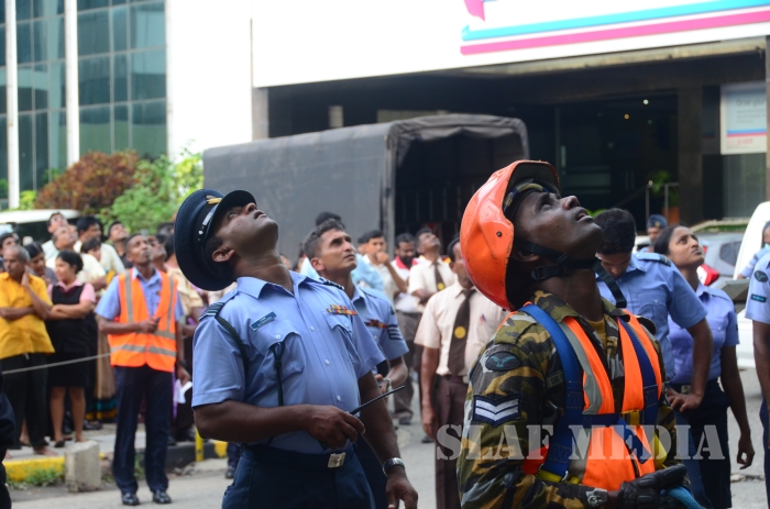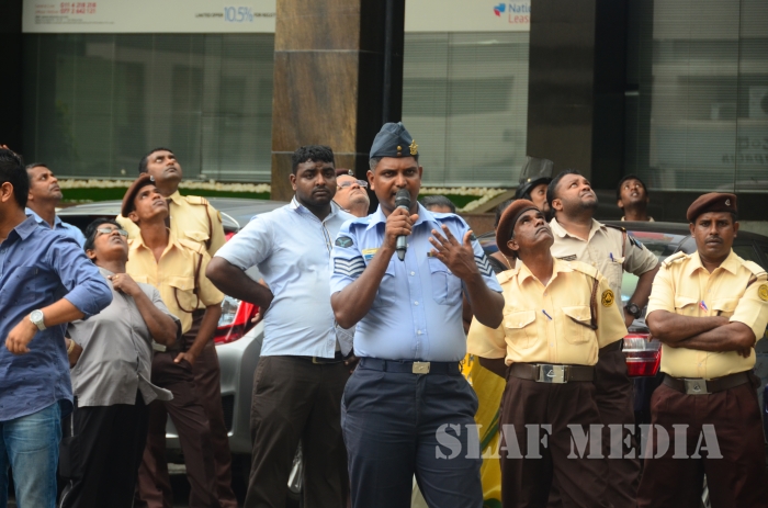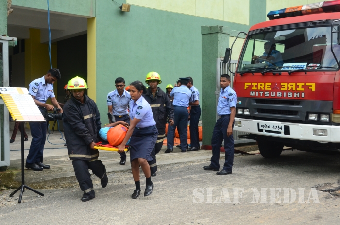 31 SLAF personnel participated in the Fire Evacuation Drill and Squadron Leader Hettiarachchi guided the SLAF fire fighters to perform the evacuation drill smoothly.
