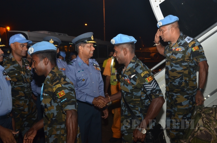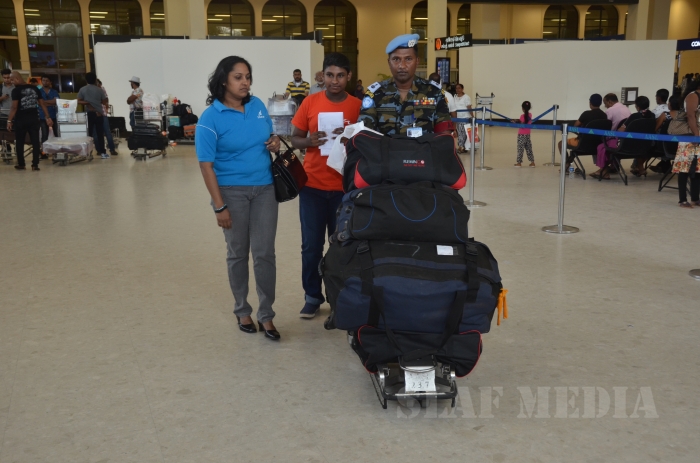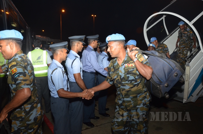 The First Contingent of SLAF Personnel, numbering 121 personnel who formed the Force Aviation Unit under the United Nations helicopter deployment in the Central African Republic (MINUSCA) arrived in Sri Lanka earlier today (10 Nov 15),on completion of a 14 month tenure. They were replaced by a fresh contingent who left the shores of Sri Lanka a few days previously.